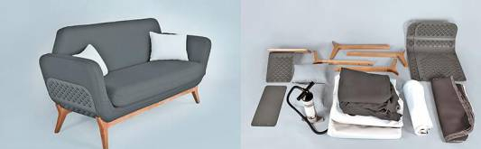 EOAL是世界上首款超级充气家具。这款沙发可以进行高强度压缩用以方便运输,同时又能在几分钟之内充气组装成一款舒适的沙发。它的强度可以承受超过2吨重SUV的碾压,防止锋利刀刃切割,化学物质侵蚀,在数十年内的使用过程中留下极少的碳足迹。EOAL方便运输,携带,储存甚至根据个人喜好进行定制升级。