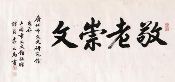 此番为何上海市文史研究馆和广州市文史研究馆会联合纪念李天马先生?作品 “敬老崇文”见证了李天马与广州、上海两地、两城之间的缘分。