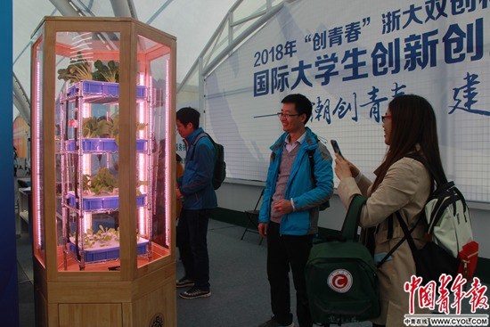两位参观人员在一个微型种植项目前驻足。中国青年报·中青在线记者 陈凤莉/摄