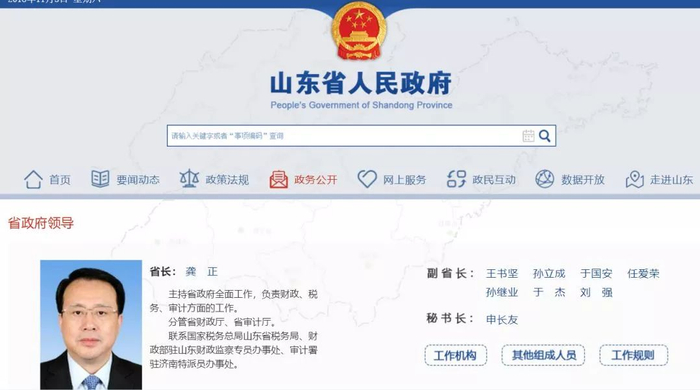 11月3日,山东省人民政府网站更新山东省政府领导分工。