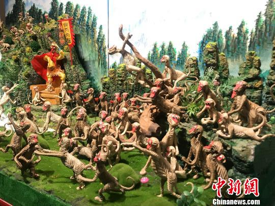 馆内展示的长沙棕叶编作品《花果山》。 刘着之 摄