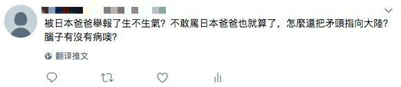 但了解整场事件来龙去脉的岛内网友忍不住嘲讽起那些挺“绿营”搞“正名”的人:被日本人举报了生不生气?不敢骂日本就算了,怎么还把矛头指向大陆?