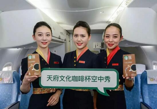 这场“天府文化咖啡杯空中秀”还走近了首届中国国际进口博览会。在进博会举办期间,在成都航空所有从成都飞往上海的单程航班上,都将为乘客提供由“天府文化咖啡杯”盛装的星巴克VIA咖啡,让乘客在享受咖啡醇香的同时,更品味到天府文化的丰富内涵,惊艳着每一个往来成都的旅人。