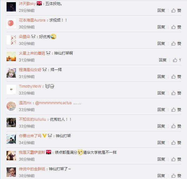 答辩会还在“清华大学”微博图文直播,众多网友围观了“神仙打架”——