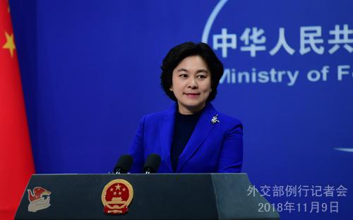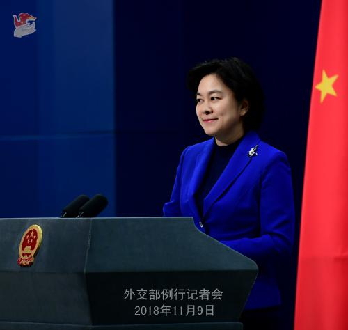 原标题:2018年11月9日外交部发言人华春莹主持例行记者会
