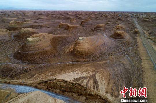 图为航拍柴达木盆地境内的雅丹魔鬼城。 代纯 摄