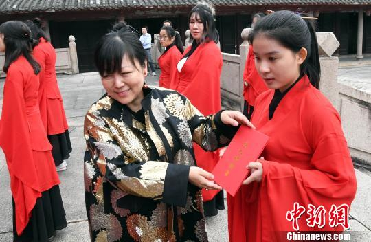 就读于福建师范大学大一的“90后”台湾新生薛豪对中新网记者说,以往对孔圣先师的了解是从书本上获得的,今天首次身着汉服在福州古香古色的文庙体验成年礼,很难忘。