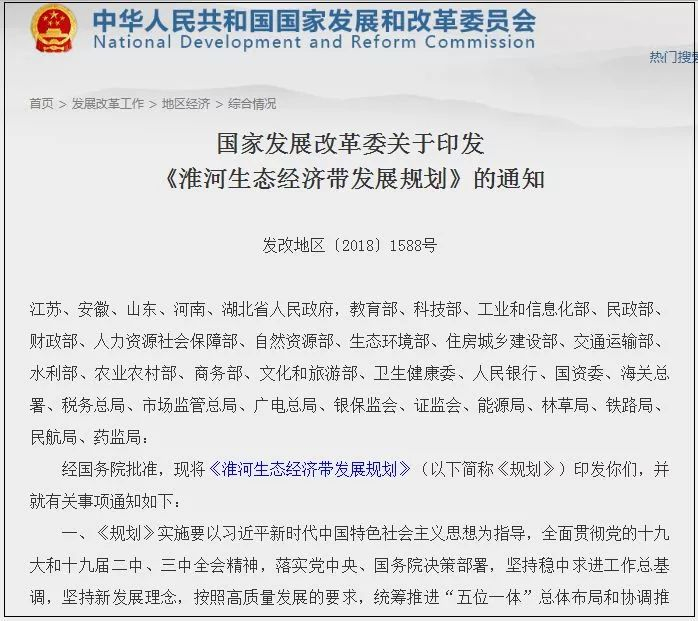 近日,国家发改委网站公布了《淮河生态经济带发展规划》全文,这意味着: