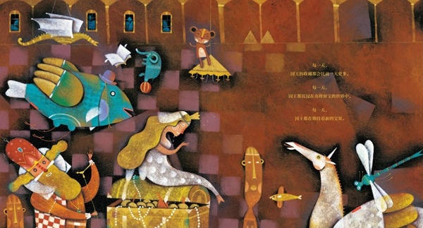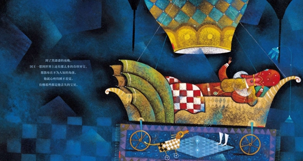 “国王一想到世界上还有那么多的奇珍异宝,都散布在不为人知的角落,他就心疼得睡不着觉,仿佛那些都是他丢失的宝贝。”