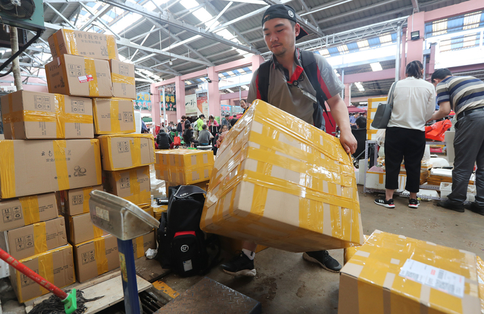我第一次见到松茸是在香格里拉中通快递点上,打包好的松茸放在统一规格的箱子里,密密麻麻地堆在一起,比人头还高,几乎没有让人落脚的地方。