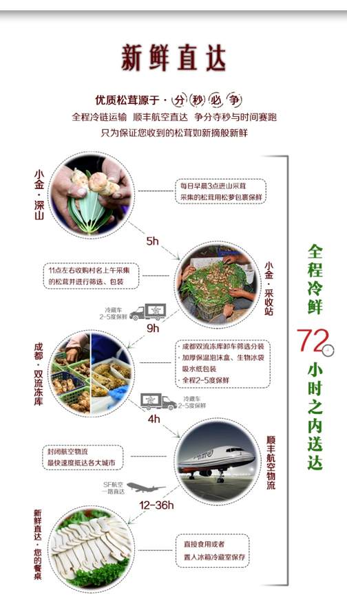 互联网上的松茸故事要丰满许多,一家淘宝店的宣传界面上建构了一个从松茸源头到饭桌的整个商品链。