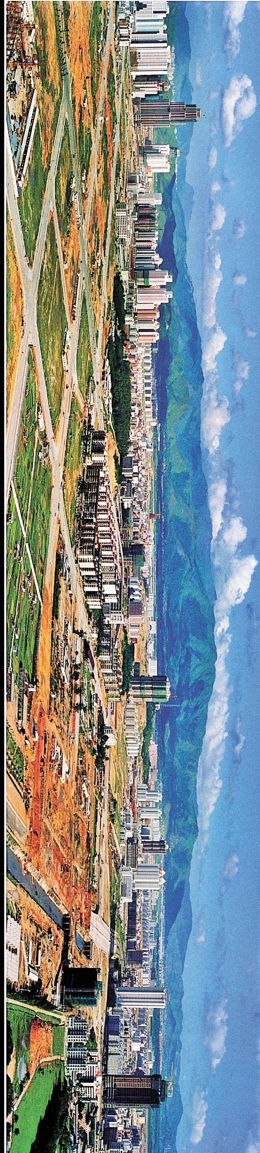 上图为1996年拍摄,中心区建筑密度不高,可见大片空地,左侧最高的那幢楼是联合广场,中间那片绿色小山包,则是现在会展中心所在地。