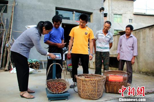 中新网宁德11月12日电 (吴苏梅)在海拔760米的福建宁德市寿宁县平溪镇燕窠村,满山遍野的锥栗树上挂满棕色的果实。村子中,当地锥栗合作社正组织贫困户挑捡锥栗,并已通过“下乡的味道”电商平台和建行“善融扶贫”合作卖出了1万多斤。