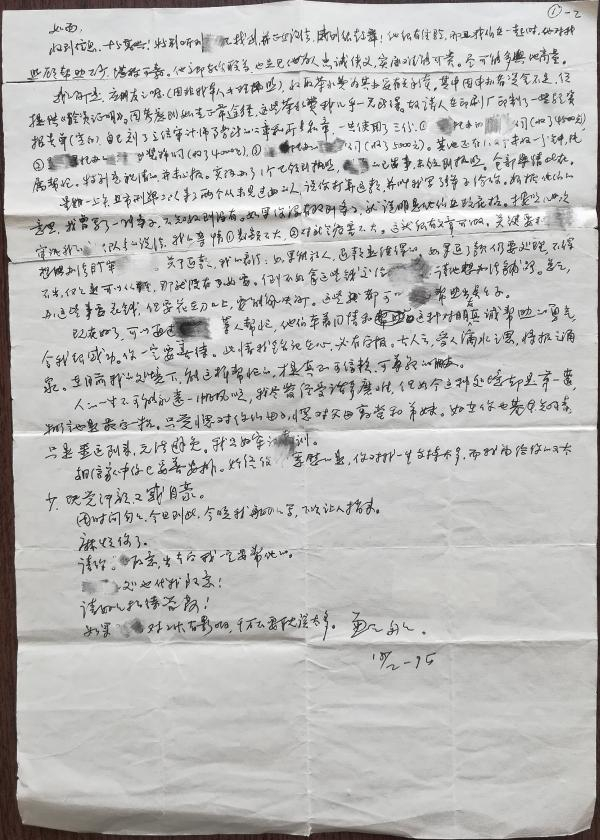 已做隐私处理的信件影印件