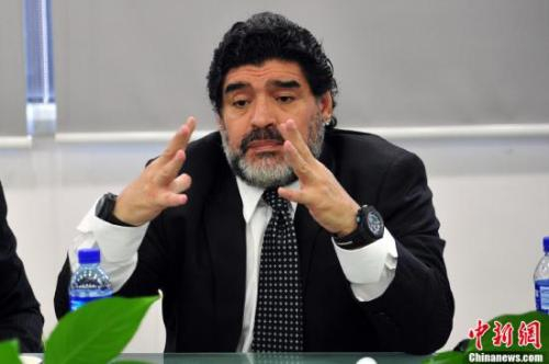 资料图:球王马拉多纳曾效力于博卡青年。中新网记者 金硕 摄