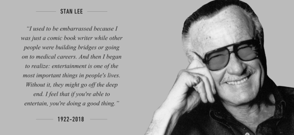 漫威的官网上斯坦·李的页面已经变成了灰色,并展示着斯坦·李这句话:“我过去会因为我仅仅是一个漫画作家,同时其他人在建造桥梁或者是治愈癌症而让我感到羞愧。然后我逐步发现,娱乐是人们生活中最重要的事情。如果你能够给人带来快乐,你就在做一件对的事情。”