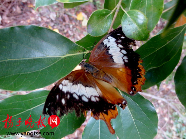 据介绍,行走在浦口的绿水湾湿地时,有时会发现一种陌生的蝴蝶,呈显黑黄白相间的斑斓彩衣,速度飞快地从行人头顶掠过,停留在香樟树叶上,这就是白带螯蛱蝶。市民称,这种神秘彪悍的白带螯蛱蝶此前从未造访过绿水湾。据介绍,白带螯蛱蝶异常勇猛,体型在蝶类中算大的,飞行速度最快,翅膀上还有类似枯黄树叶的伪装色,所以很难被捕捉。该种蝴蝶通常色彩亮丽,体型像个大蟹螯,因此得名。