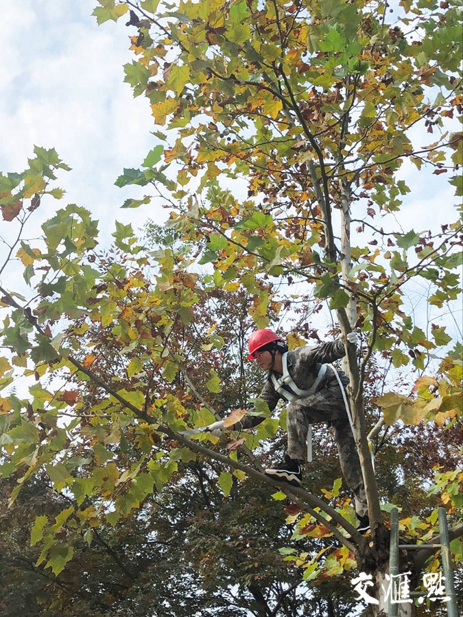 交汇点讯 落叶时节忙剪枝,怎样让一棵棵梧桐树变成一条壮观美丽的梧桐大道?让一株株海棠变成一条优美的海棠景观路?比过栽盆景,赛过养花草,2018年绿化园林行业的技能大赛题目是“修树剪枝”,将“工匠精神”细致到每一根枝头。