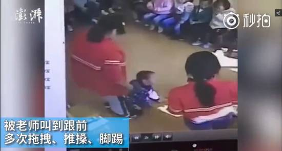 在两段不到3分钟的视频中,先后有十多名孩子挨打。据家长反映,这个班级总共有35名孩子,视频中两名老师是该班班主任刘某和配课老师冯某。