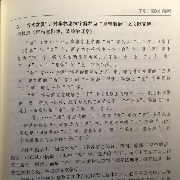 关于“当堂常赏”的摘字法说明,《董小宛入清宫与顺治出家考》第325页