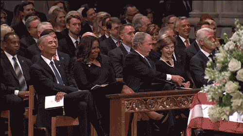 葬礼于9月1日在华盛顿举行。葬礼上,摄像机捕捉到了米歇尔和小布什之间的“温馨时刻”。妻子劳拉给了小布什一块糖,小布什随即递给了米歇尔。