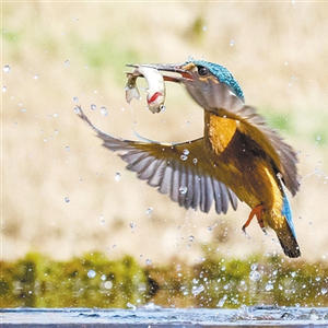 近日,摄影师康纳·迈凯伦守候10个小时后,完美捕捉到一只翠鸟捕鱼的画面。据外媒报道,这只颜值颇高的翠鸟收紧翅膀直直地潜入水中,然后成功捕捉到一条鱼儿出水,整个过程显得非常有技巧。等这只成功捕食的翠鸟落在树梢上后,它的嘴里还叼着战利品。