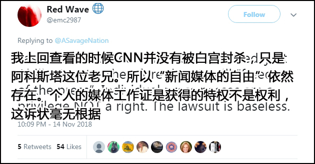 美国网友也认为CNN这次以“言论自由”之名起诉,作秀成分更多: