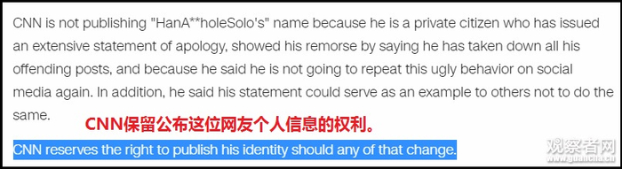 一名CNN记者当时写道:“如果该用户‘改变’行为,CNN保留公开他个人信息的权利。”