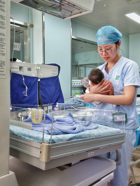 图说:医护为早产儿提供呵护 来源/竺钢 摄(下同)
