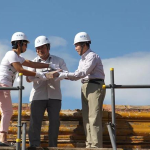 故宫博物院院长单霁翔(中)与前院长郑欣淼(右)将宝匣取出,交给故宫古建部副研究馆员徐超英(左)
