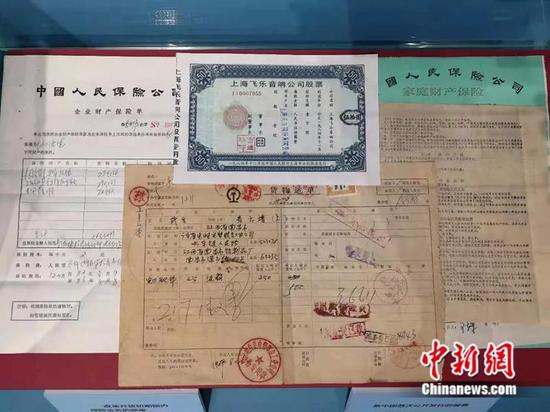 改革开放初期国内保险业务的保单和新中国首次公开发行的股票: