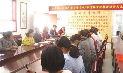 在工作开展中,一中联合体提出了“六同步”的具体举措,即教学计划同步、课程安排同步、备课教研同步、教学进度同步、教师培训同步以及教育活动同步。一是成立了“特级教师工作室”,将两所学校的骨干教师吸纳为名师工作室成员,深入开展教学教研活动,取得了良好的引领效果;二是集中开展“教研活动日”形成两校共享名优师资、共享教学资源、共促教师专业成长的常态教研机制;三是实行教师轮岗交流,发挥轮岗教师的骨干引领作用。