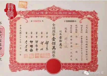 1948年永安纺织股份有限公司股票(后为上海第二十九棉纺织印染厂)