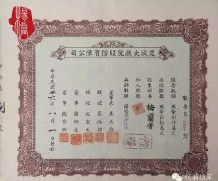 楚城大戏院(周家牌路91号)也请到了京剧大师梅兰芳担任股东。