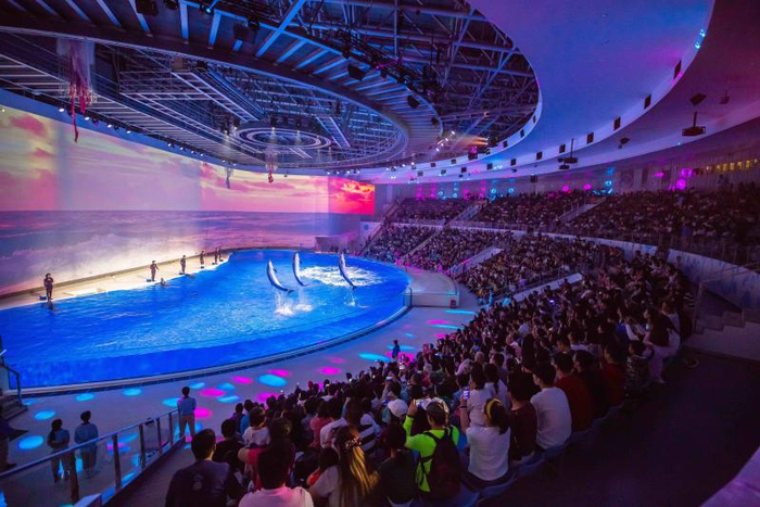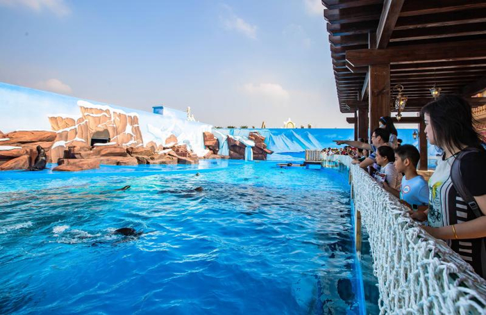 在这里你将看到,五大明星剧目——《海豚奇缘》、《白鲸之恋》、《海狮特快》、《梦幻美人鱼》及虎鲸科普秀。两大高科技影院——天幕影院、超感4D影院,10余项游乐设施——海豚过山车、时空缆车、雪国列车、深海奇航、极速企鹅、海洋木马、鹈鹕大冒险等,还有海豚家园“人豚互动”、“企鹅极地体验”以及“海洋梦幻花车巡游”等特色内容。