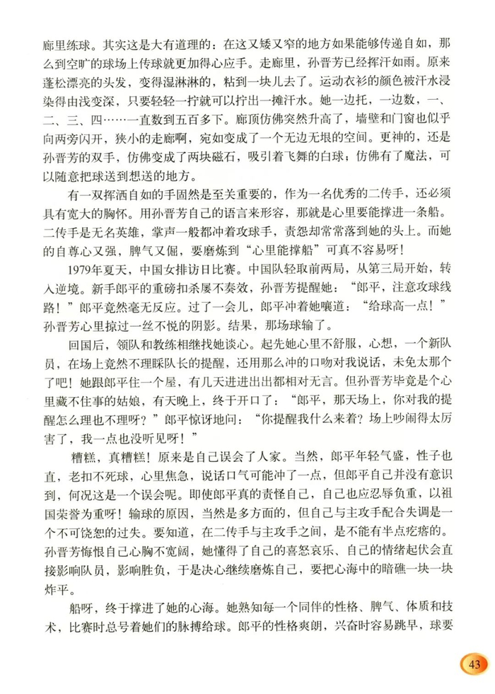 本文是一篇报告文学,原文为《中国姑娘》,作者是鲁光。全文记叙了女排队长孙晋芳的事迹,赞美了她刻苦训练,勇于拼搏的精神及率直、聪慧、胸怀宽广的个性。作者通过孙晋芳的训练、比赛、遭受挫折时的苦闷和取得胜利的欢欣,以及女排姑娘们同心协力取得巨大成绩的团队精神,刻画了一个刻苦、率直、聪慧、胸怀宽广的女排队长的完美形象。