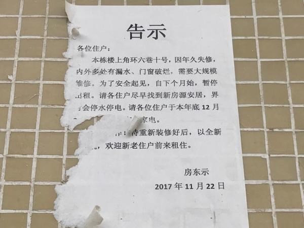2018年1月,上海老西门一带在拆违前的租房广告。
