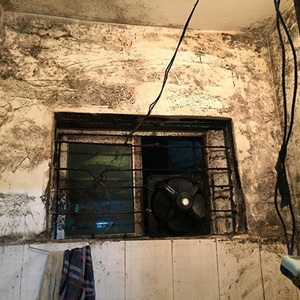 许多蜗居于城中村巷道深处低楼层的外来务工人员,常年忍受阴暗潮湿的空间,面对发霉的墙壁。本文图片均由作者提供。