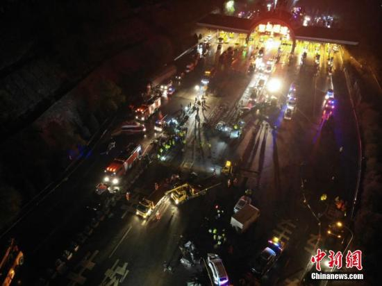 资料图,11月3日19时30分许,一辆辽宁籍重型半挂车行驶至兰临高速兰州南收费站出口处时先后与等候缴费的26辆车辆发生碰撞。司机自述因连续下坡、刹车失灵。杨艳敏 摄
