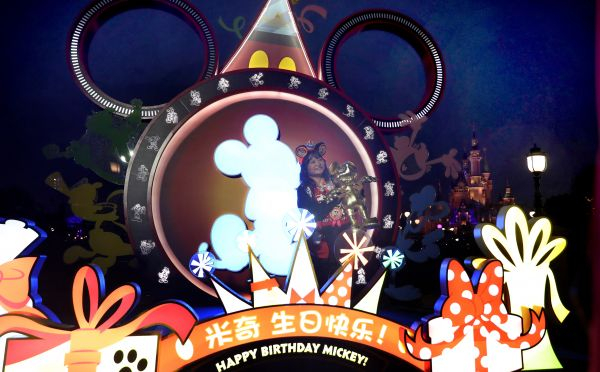 11月18日,上海迪士尼庆祝米老鼠动漫形象90岁生日。(新华社)