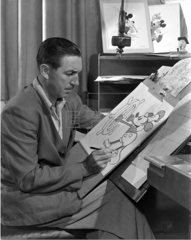 迪士尼公司档案馆提供的照片纪录了华特·迪士尼在绘制米奇的情景(埃菲社)