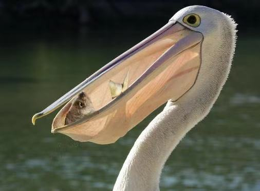 11月20日,记者来到红山动物园,一进西门,就看到了已经和环尾狐猴做了邻居的这两只白鹈鹕。两只白鹈鹕除了嘴大眼睛大的特色之外,还真是挺美的。身材修长,身高达到了180厘米,翼展有近360厘米,据饲养员介绍,雄性鹈鹕还可以继续生长发育,成年后身高可以达到2米多。这样的身高,的确适合打篮球了。而鹈鹕最为引人注目的大嘴,有近40厘米长,嘴下面带有一个橙黄色的喉囊,可以自由伸缩,储存食物。饲养员告诉记者,鹈鹕的喉囊伸缩性很强,可以装进一条几斤重的大鱼,但是他们一般在喉囊里储存一些小鱼小虾,方便自己食用。新到红山动物园的这两只鹈鹕,目前每天喂食两次,每只鹈鹕每次要吃掉2斤左右的鲜鱼,食量也真是不小。即使每天吃这么多,鹈鹕闲了的时候,还会捕捉居住地红鹳湖里的小鱼。