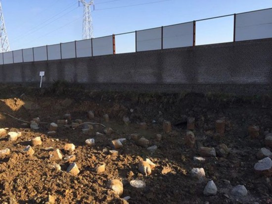 被征迁一半的中华鲟养殖场围墙外的施工工地。