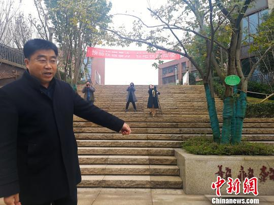 图为重庆第一双语学校校长鲁善坤带记者参观正在建设的学校礼堂。 刘贤 摄