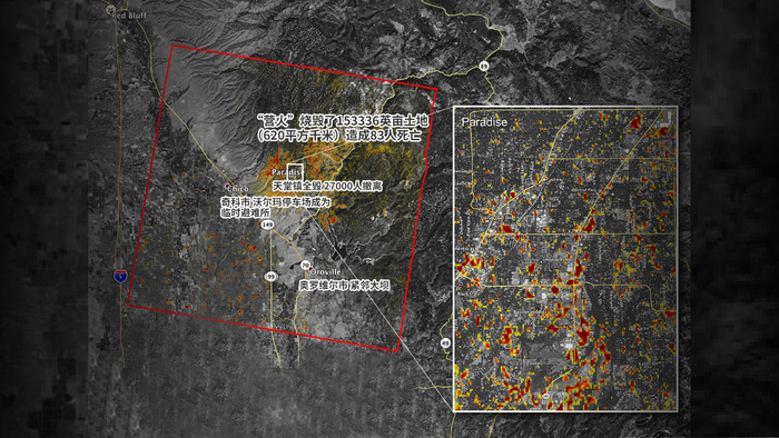 据CBS新闻报道,“营火”烧毁了153336英亩土地,18886栋建筑被毁,造成83人死亡,560人下落不明,火势得到了85%的控制。