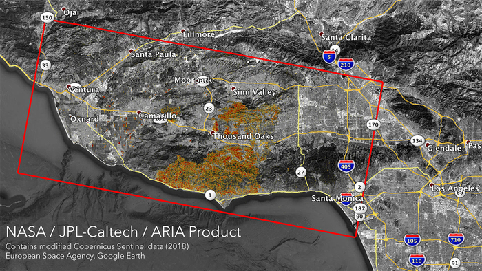NASA的另一个科研机构,位于加州帕萨迪纳喷气推进实验室(钱学森院士参与创建)的“高级快速成像分析(ARIA)”团队则在11月16日制作了另一种风格的受损图片(DPM)。