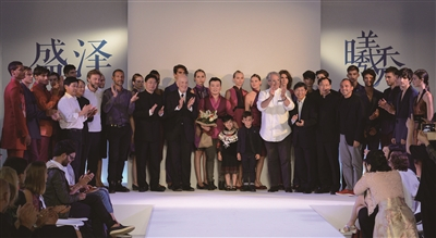 2018年10月,盛泽第五届纺织博览会上,鼎盛和华佳两大丝绸企业压轴走秀华美惊艳。图为盛泽镇领导、企业家和模特合影留念。
