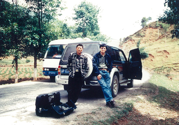 2002年《虎日》摄制工作照,左为彝族头人嘉日姆几,右为庄孔韶。