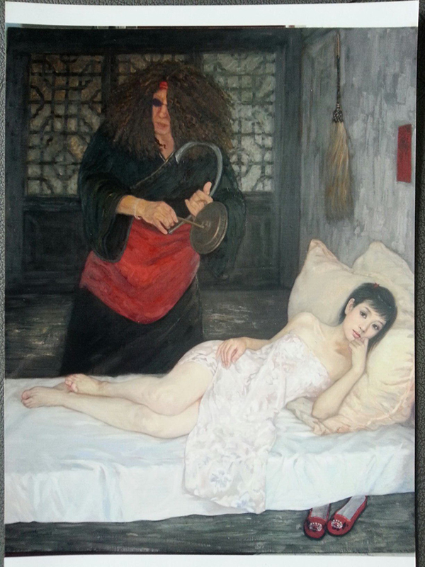 庄孔韶创意,林建寿获奖油画《祈男》(2000年),源自金翼山谷一次闾山派家庭科仪,庄孔韶本人模拟红头师公。