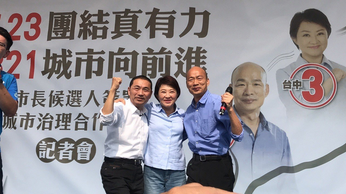 截至目前,表现最抢眼的是国民党在新北、台中、高雄提名的三位候选人,分别是侯友宜、卢秀燕、韩国瑜。最近,北中南三人联合打出“123,救台湾”,“探子、燕子、贩子,让台湾人过好日子”等口号。